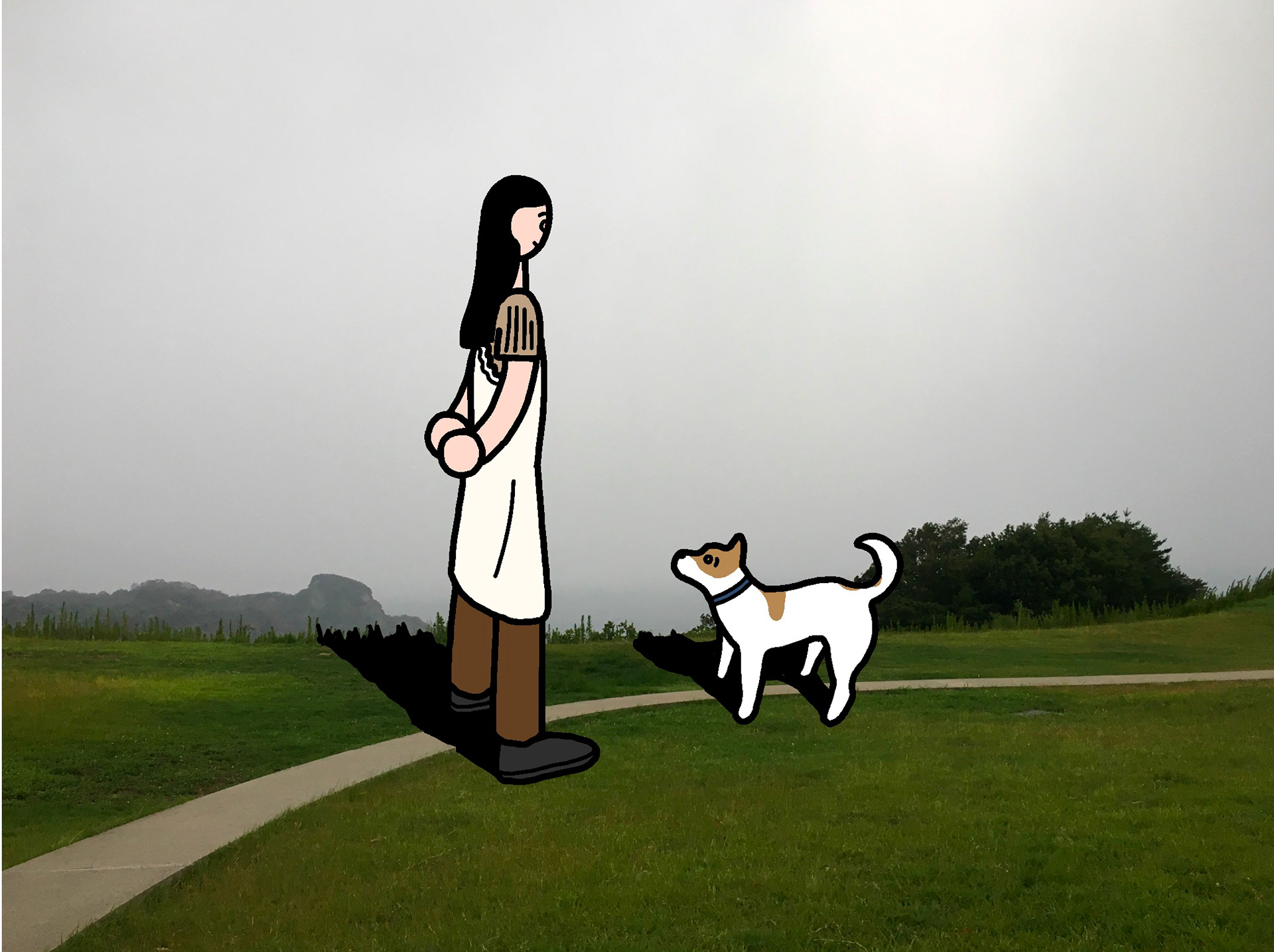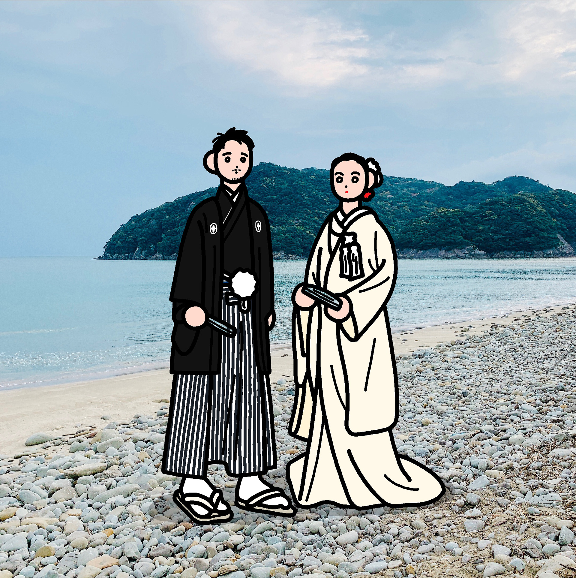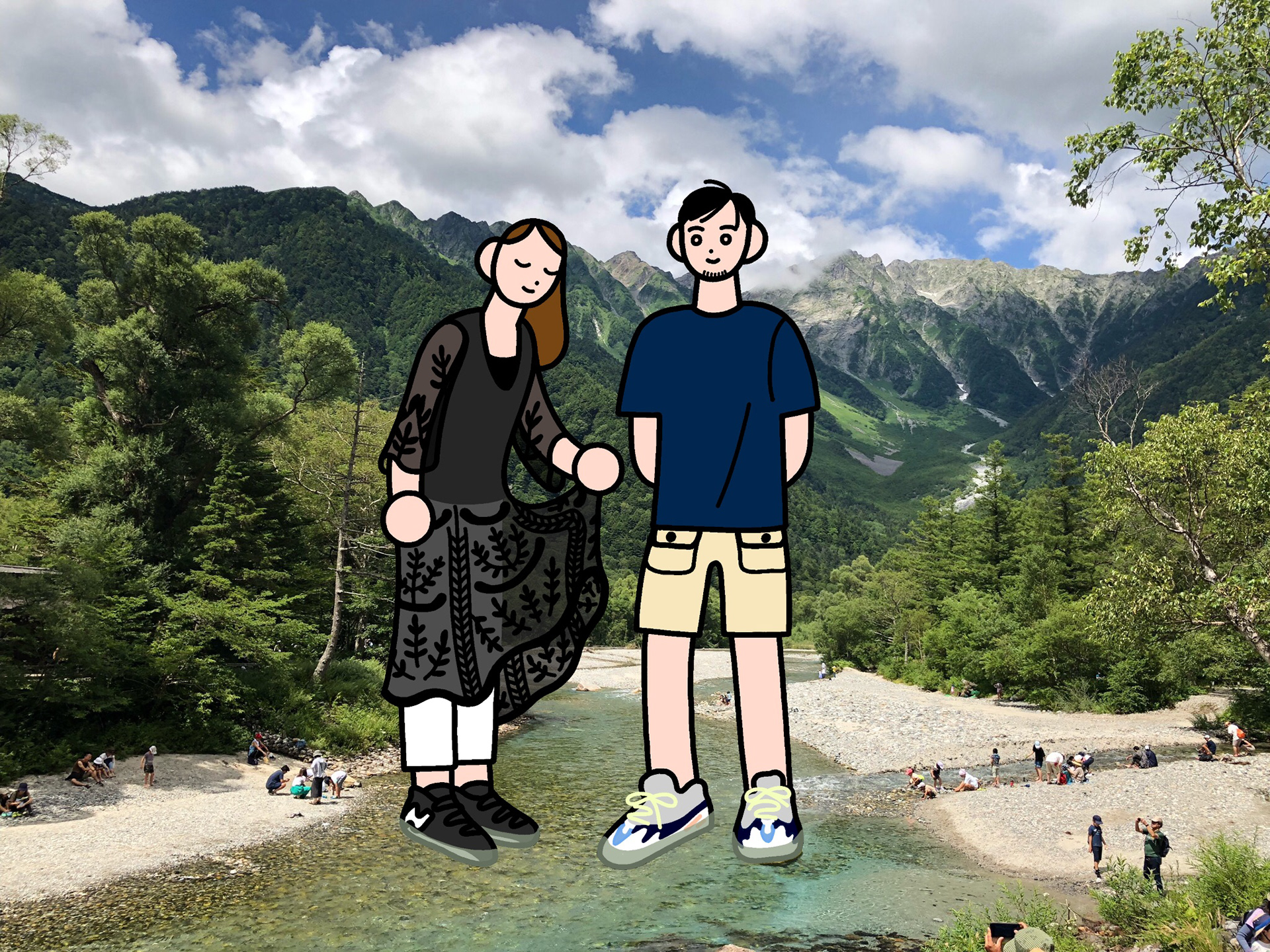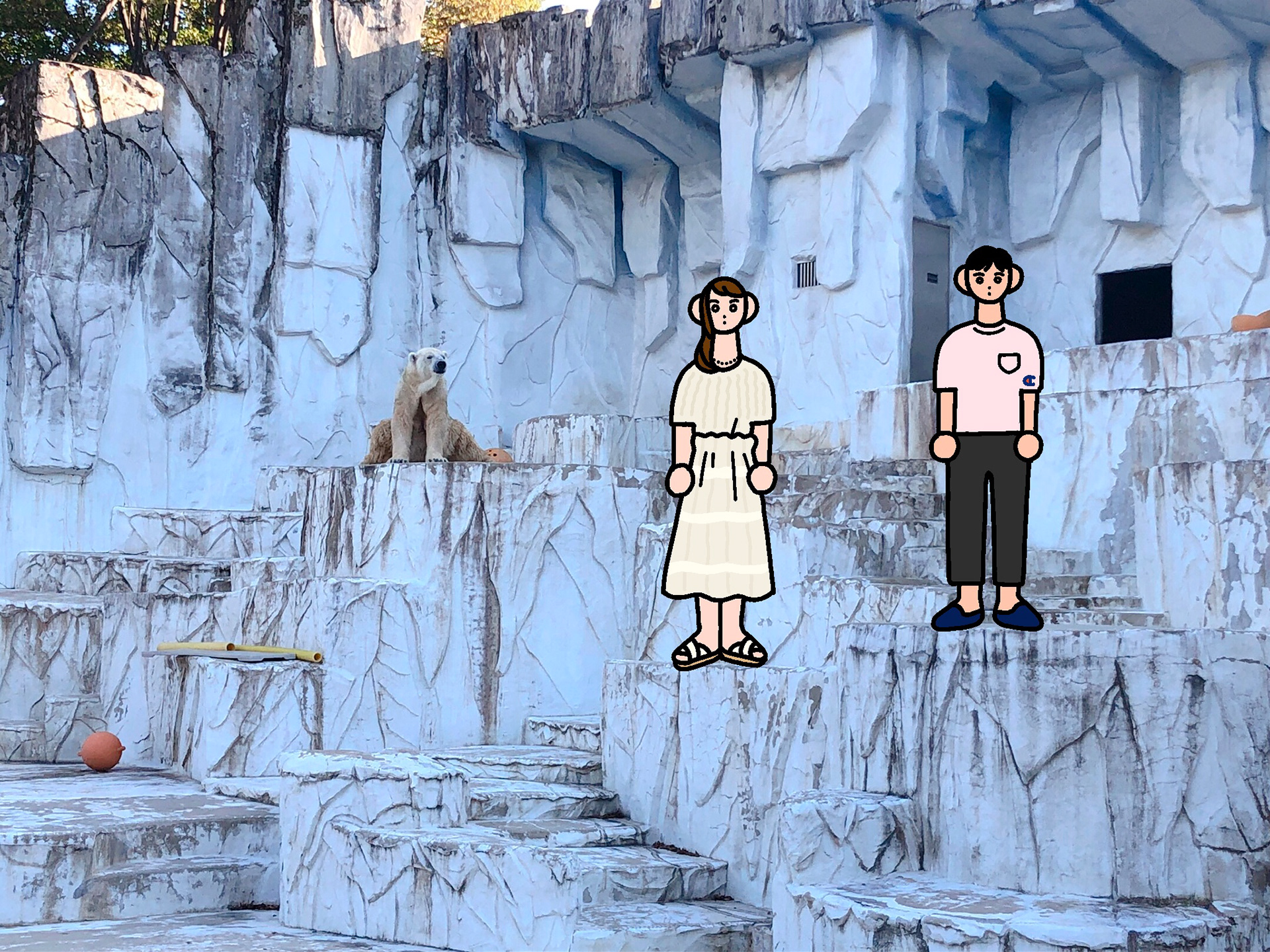 好きな場所の写真を用意してもらい、その上に似顔絵を描く企画。 個展「be同士」の期間中に実施しました。